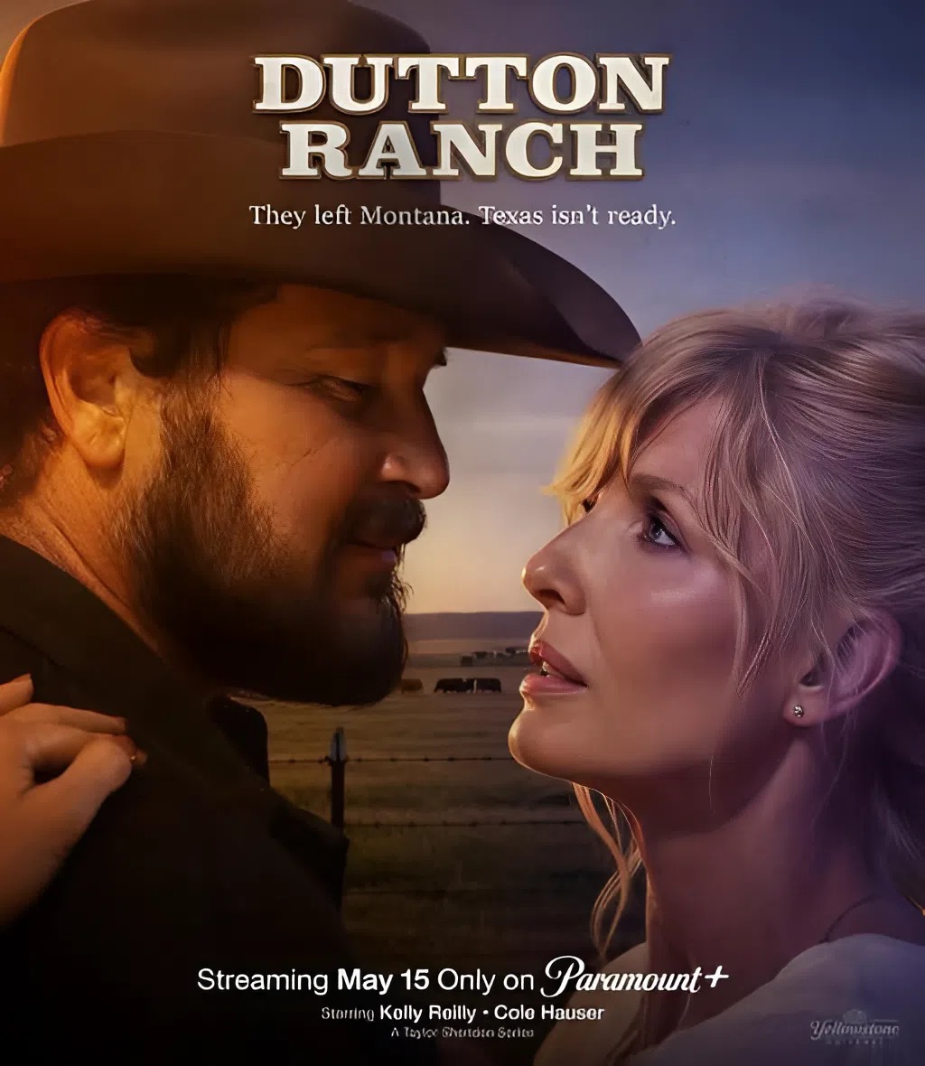 Có thể là hình ảnh về văn bản cho biết 'DUTTON RANCH They Theyleft.Montana.Texasisnt.ready. left Montana. Texas isn't ready. Streaming May 15 Only on Paramount StreaningMay150nlyonParumoul+ + Kelly Reilly Cole Hauser'