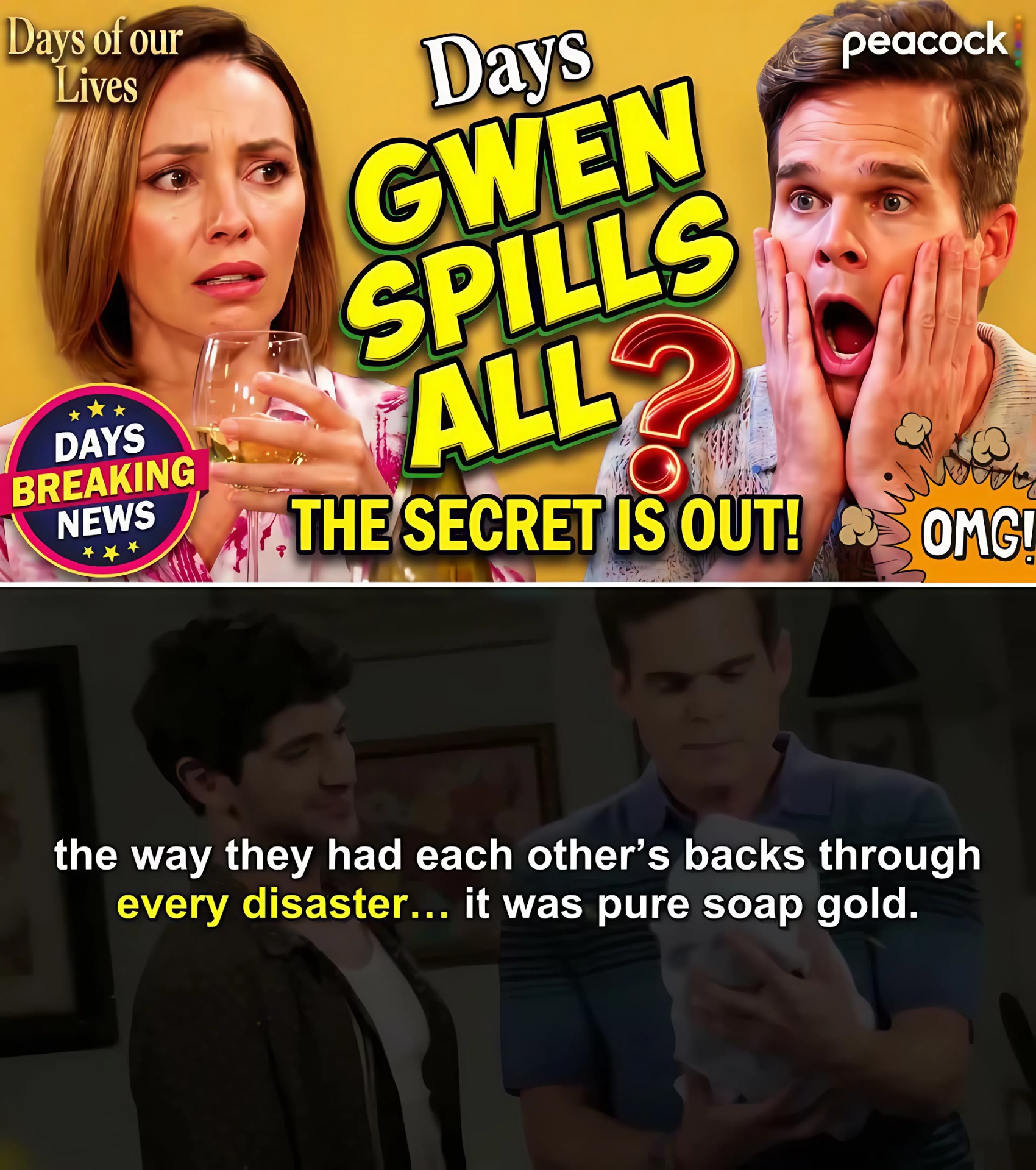 The drama intensifies when Leo, Gwen’s best friend, confronts her about her time with EJ and the secrets she’s been hiding. With a bottle of wine between them, Gwen finally breaks down and reveals that not only was she living in the DiMera mansion, but she was also involved in financing dangerous experiments alongside Dr. Rolf.